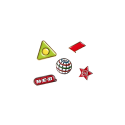 Funky, fashionable, and fresh. If your brand can be described in any of these terms, than these are the pins for you. After being stamped from iron, the recessed areas of the design are colored using a soft enamel that is then cured. Add an optional epoxy dome to give a level surface finish. Please note, this is a true spot color product - metal must separate the different colors.